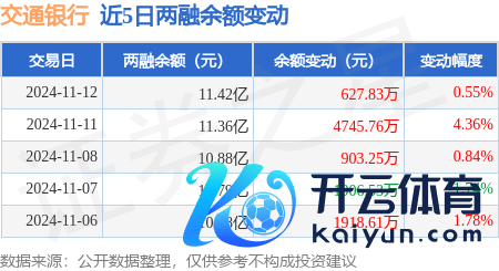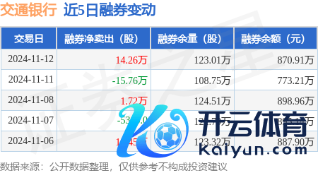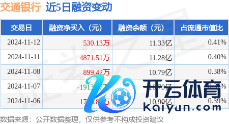 本站音书,11月12日,交通银行(601328)融资买入5137.93万元万博manbext体育官网,融资偿还4607.8万元,融资净买入530.13万元,融资余额11.33亿元,近3个交以前已换取净买入累计6301.06万元,近20个交以前中有13个交以前出现融资净买入。