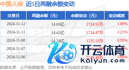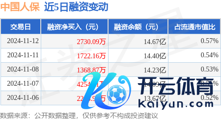 本站讯息,11月12日,中国东说念主保(601319)融资买入1.15亿元,融资偿还8805.21万元,融资净买入2730.09万元,融资余额14.67亿元,近3个交游日已贯穿净买入累计5821.12万元,近20个交游日中有11个交游日出现融资净买入。