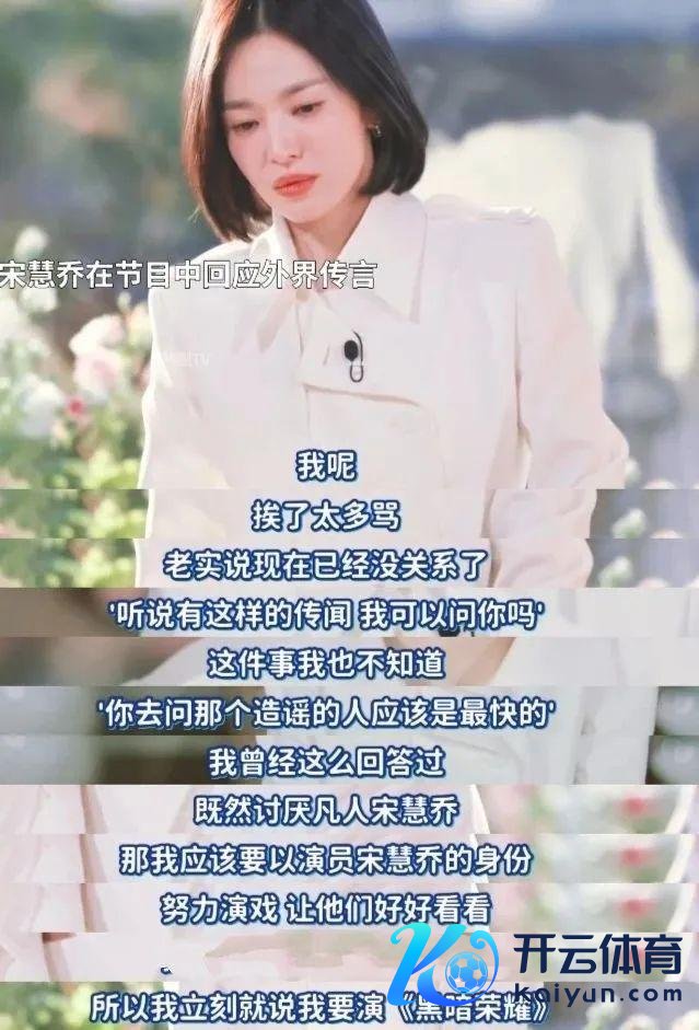 在访谈中宋慧乔回来了我方在演艺界的东说念主生,对话中咱们看到了一个不止天渊的宋慧乔,内核愈发纷乱,辞吐间平添了许多轻柔、智谋、漠然。