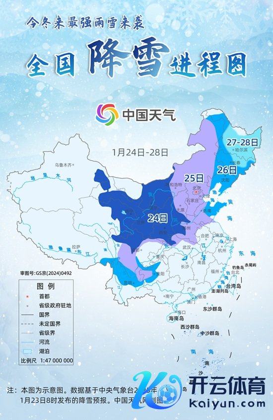 从中国天气网推出的寰宇降雪进度图来看,24日至25日是雨雪限度最大的时段,十余个省份会受到影响,西北、华北大部、黄淮中西部以及湖北北部、四川中部将有小到中雪或雨夹雪,部分地区大到暴雪。26日,东北中南部、贵州西部、云南北部降雪增加,以小到中雪或雨夹雪为主。27日至28日伴跟着冷涡、气旋发展,通常黄海、日本海水汽干预并团聚抬升,东北可能出现强降雪,辽宁局地能达到暴雪量级。