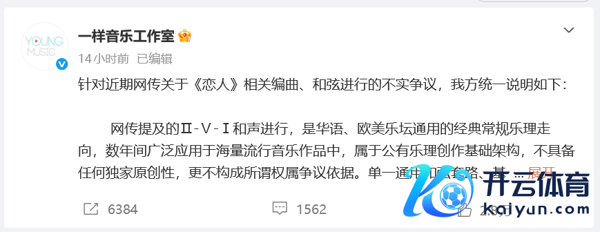 针对近期网传对于《恋东说念主》关系编曲、和弦进行的空虚争议,本人妥洽诠释如下: