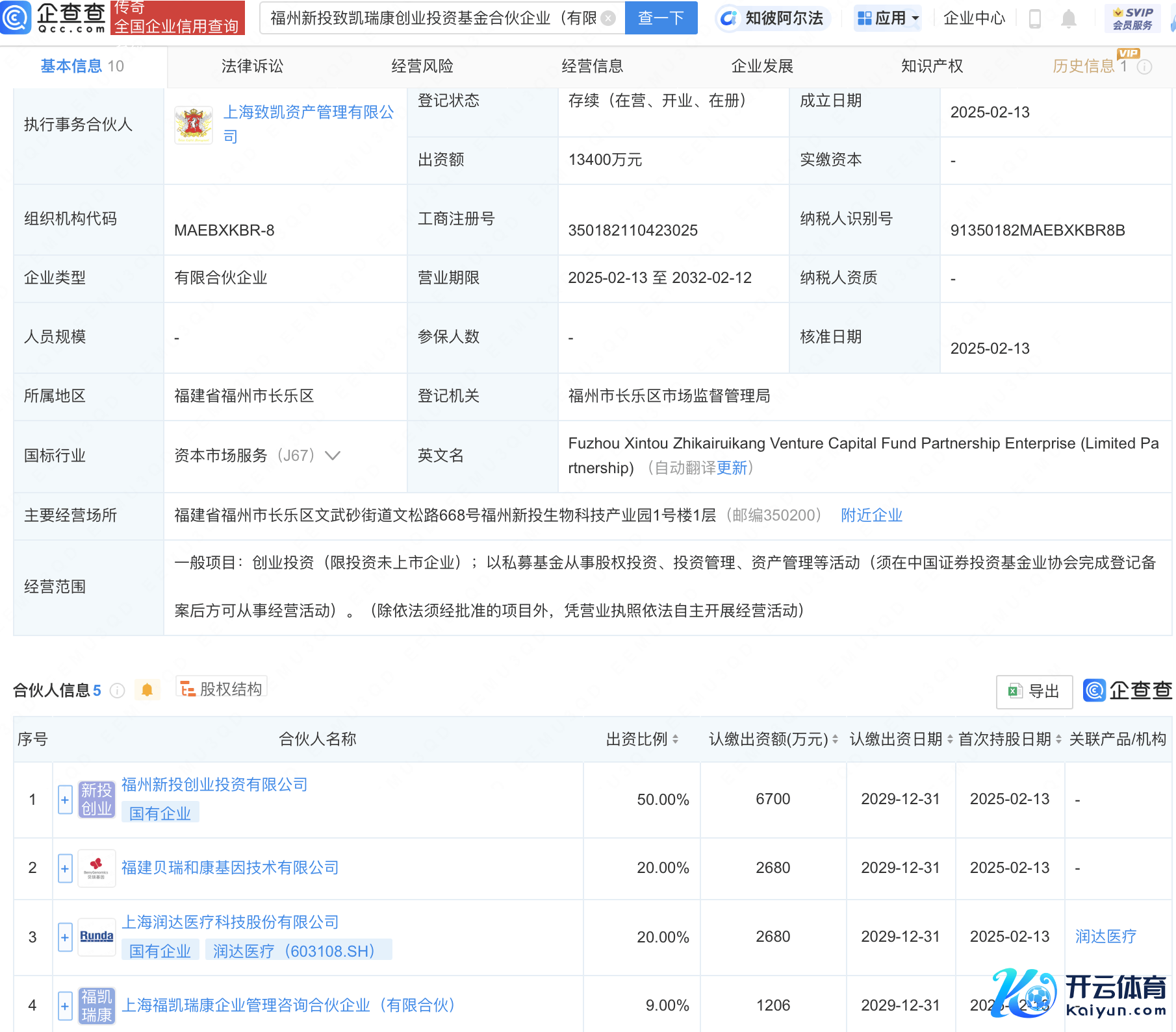 企查查APP走漏万博manbext体育官网app娱乐,近日,福州新投致凯瑞康创业投资基金结伙企业(有限结伙)修复,打算鸿沟包含:以私募基金从事股权投资、投资措置、金钱措置等活动。企查查股权穿透走漏,该企业由润达医疗(603108)等共同出资。