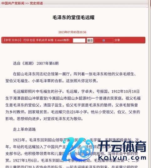 信息起原:中国共产党新闻网 2013.7.5 —— 毛泽东的堂侄毛远耀