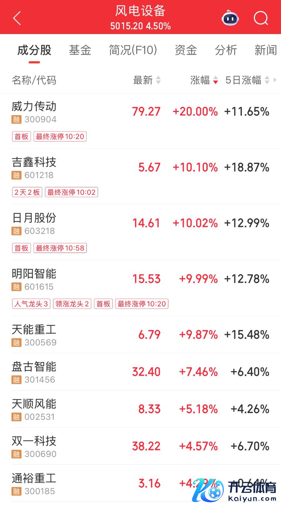 9月26日,A股风电成立板块强势拉升,成为市集焦点。畛域午间收盘,风电成立指数高涨4.5%,威力传动、吉鑫科技、明阳智能、日月股份涨停,盘古智能、天能重工、天顺风能等个股跟涨。